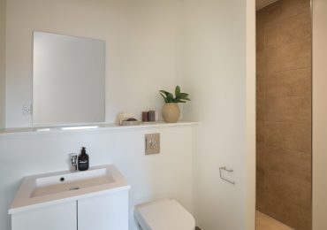 Rækkehusene har to badeværelser, egen vaskesøjle, ventilation og gulvvarme i alle rum, og med boligen følger desuden et skur med opbevaringsplads og en carport, så du kan parkere bilen lige ved døren.