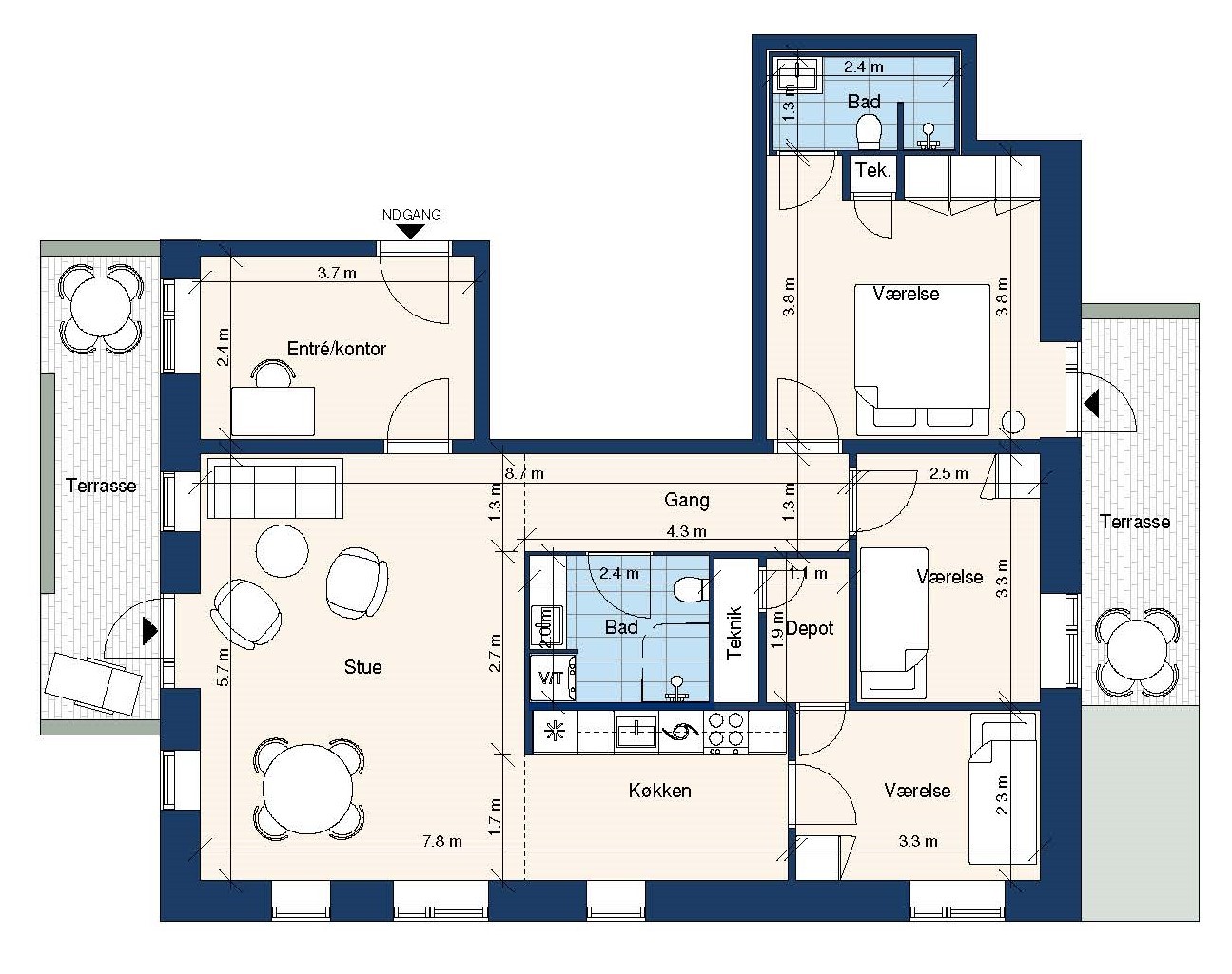 Skøn 5-værelses stuelejlighed på perfekt beliggenhed. Lejligheden har Invita-køkken med hårde hvidevarer fra Siemens, som gør madlavningen og tiden i køkkenet ekstra bekvemmelig. I forlængelse af køkkenet er en stor stue med udgang til terrasse, hvor du kan nyde en dejlig udestund. Udover et stort soveværelse med eget badeværelse og udgang til boligens anden terrasse huser lejligheden tre gode værelser. Der er Siemens-vaskesøjle på det ene badeværelse, gulvvarme i alle rum, skabe i alle soveværelser, og lejligheden har desuden et depotrum.