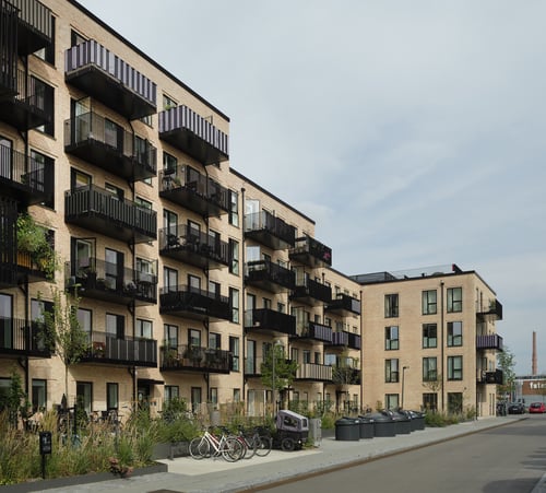 Blåbærhaven er en karrébygning på 6 etager med i alt 76 skønne lejligheder. Boligerne er mellem 46 og 119 m2 og har 2-5 værelser. Blåbærhavens 6 etager og placering på Frederiksbro giver mulighed for både at nyde den skønne udsigt over området og opleve den levende stemning fra Frederiksbro Torv helt tæt på. Derudover har bygningen en hyggelig fælles tagterrasse, som frit kan benyttes af Blåbærhavens beboere. Med en lejebolig i Blåbærhaven behøver du ikke vælge mellem fredfyldt natur og en levende bymidte, men kan få det bedste fra begge verdener.