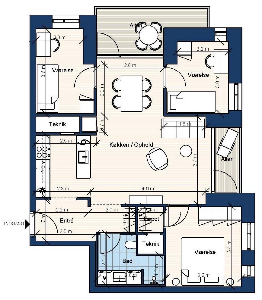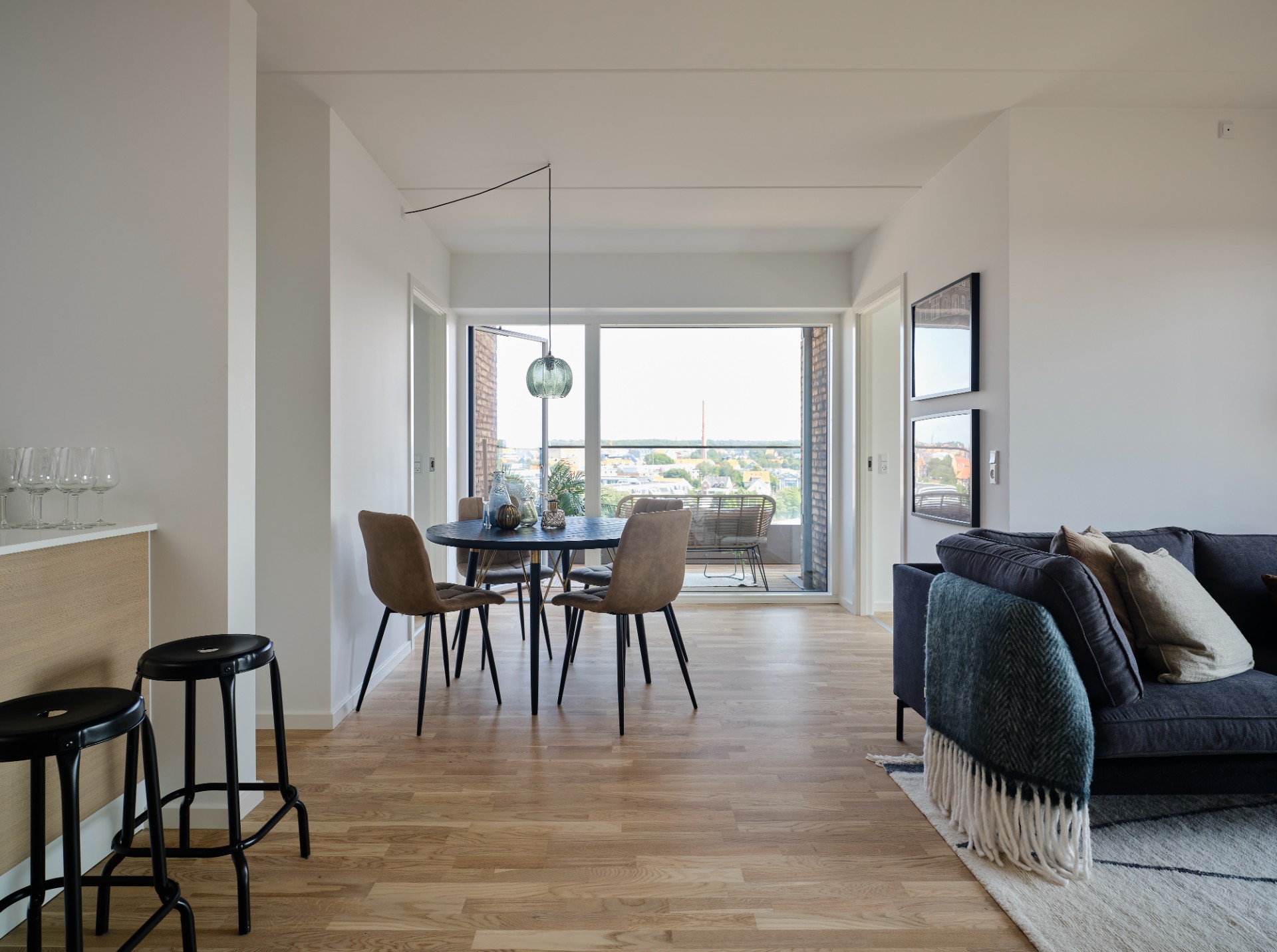 Nyopført 4-værelses lejlighed med hele 2 altaner. Men en sydvendt og en østvendt altan får du rig mulighed for at nyde udsigten over Frederiksbro Parken og det fredede område Bøllemosen. Køkkenet er fra Invita og udstyret med hårde hvidevarer fra Siemens. I direkte forlængelse af køkkenet er en dejlig opholdsstue med udgang til begge boligens altaner. Her kan du nyde en fredelig udestund med udsigt til Frederiksbro og de omkringliggende områder. I alle tre værelser står installerede skabe, og lejligheden har desuden et depotrum. Der er gulvvarme i alle rum, og på badeværelset er både vaskemaskine og tørretumbler fra Siemens.