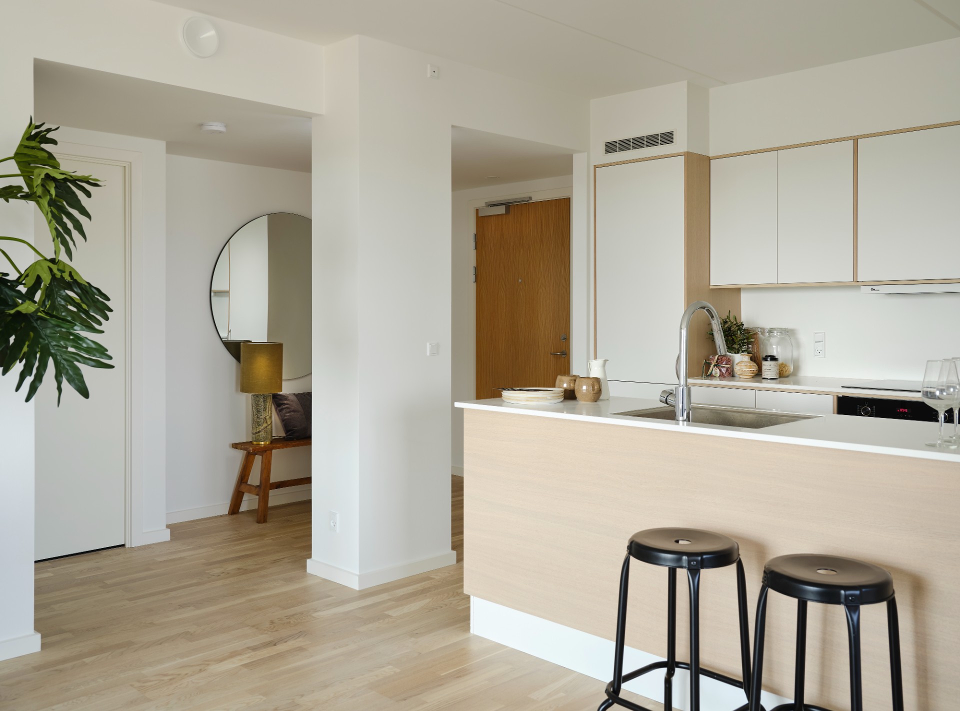 Frederiksbro er en helt ny bydel i Hillerød, hvor du kan være det bedste sted i livet. Her opføres ca. 1.300 lejeboliger i varierende typer og størrelser, så uanset hvor i livet, du befinder dig, kan du finde en bolig, der passer til dig. Midt i bydelen ligger Frederiksbro Parken og Svanesøen, hvor du kan lade batterierne op i grønne omgivelser samtidig med, at der er plads til leg og aktiviteter. Derudover får du som beboer glæde af legeområder, multibane, udendørs fitnessområde, privat badepavillon og bekvemme indkøbsmuligheder i områdets Coop 365. Fra Roskildevej og Trollesmindealle er der gode busforbindelser, herunder til Hillerød Station, som også kun er en 6 minutters cykeltur væk. Fra stationen kan du nemt komme til landsdelens øvrige store byer, og du er i København på kun 40 minutter. Hillerød Station er under udvidelse og bliver forbundet med den nye Favrholm Station nær det kommende Nyt Hospital Nordsjælland. Der er på området mulighed for op til to parkeringslicenser pr. bolig.