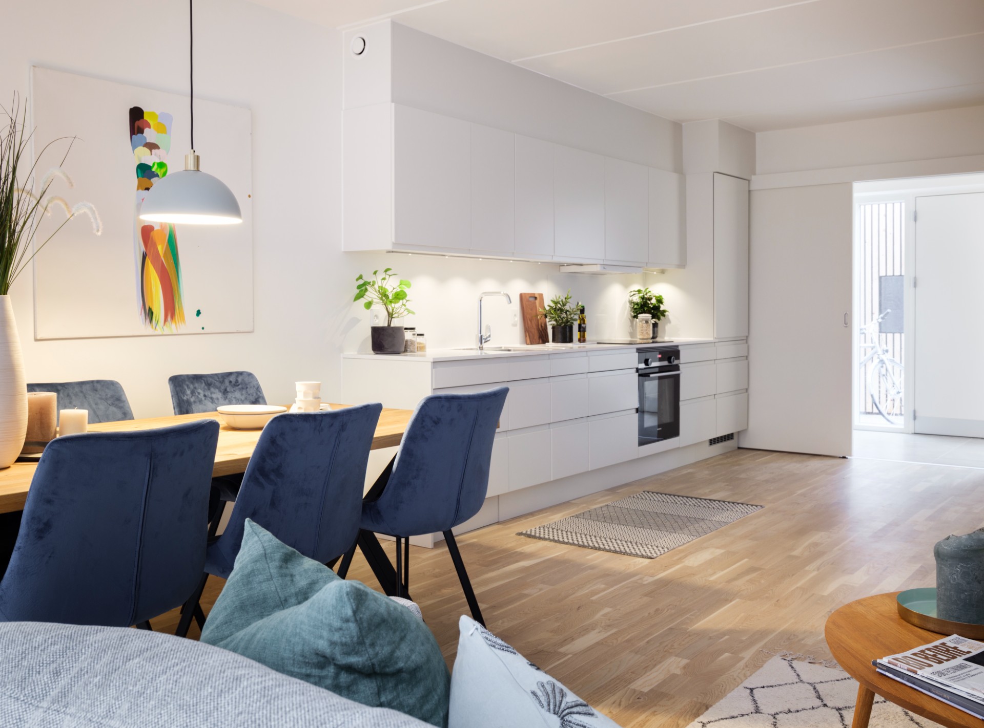 Frederiksbro er en helt ny bydel i Hillerød, hvor du kan være det bedste sted i livet. Her opføres ca. 1.300 lejeboliger i varierende typer og størrelser, så uanset hvor i livet, du befinder dig, kan du finde en bolig, der passer til dig. Midt i bydelen ligger Frederiksbro Parken og Svanesøen, hvor du kan lade batterierne op i grønne omgivelser samtidig med, at der er plads til leg og aktiviteter. Derudover får du som beboer glæde af legeområder, multibane, udendørs fitnessområde, privat badepavillon og bekvemme indkøbsmuligheder i områdets Coop 365. Fra Roskildevej og Trollesmindealle er der gode busforbindelser, herunder til Hillerød Station, som også kun er en 6 minutters cykeltur væk. Fra stationen kan du nemt komme til landsdelens øvrige store byer, og du er i København på kun 40 minutter. Hillerød Station er under udvidelse og bliver forbundet med den nye Favrholm Station nær det kommende Nyt Hospital Nordsjælland. Der er på området mulighed for op til to parkeringslicenser pr. bolig.