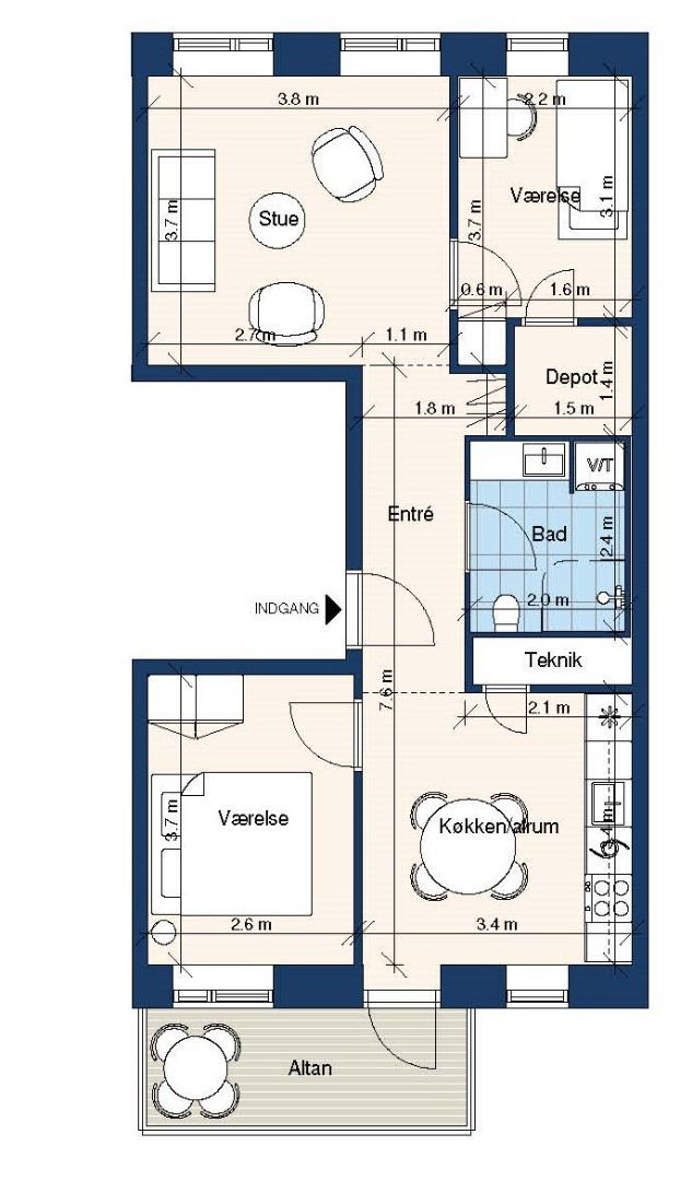Nyopført 3-værelses lejlighed med køkken-alrum, stue og to gode værelser med skabe. På lejlighedens rummelige altan har du mulighed for at nyde en dejlig udestund med udsigt til Bøllemosen og eftermiddagssolen. Der er gulvvarme i alle rum, og køkkenet fra Invita er holdt i lyse farver. Hårde hvidevarerne fra Siemens gør madlavningen til en leg, og på det lyse badeværelse har du egen vaskesøjle i energiklasse A++ - også fra Siemens. Lejligheden har desuden et depotrum.