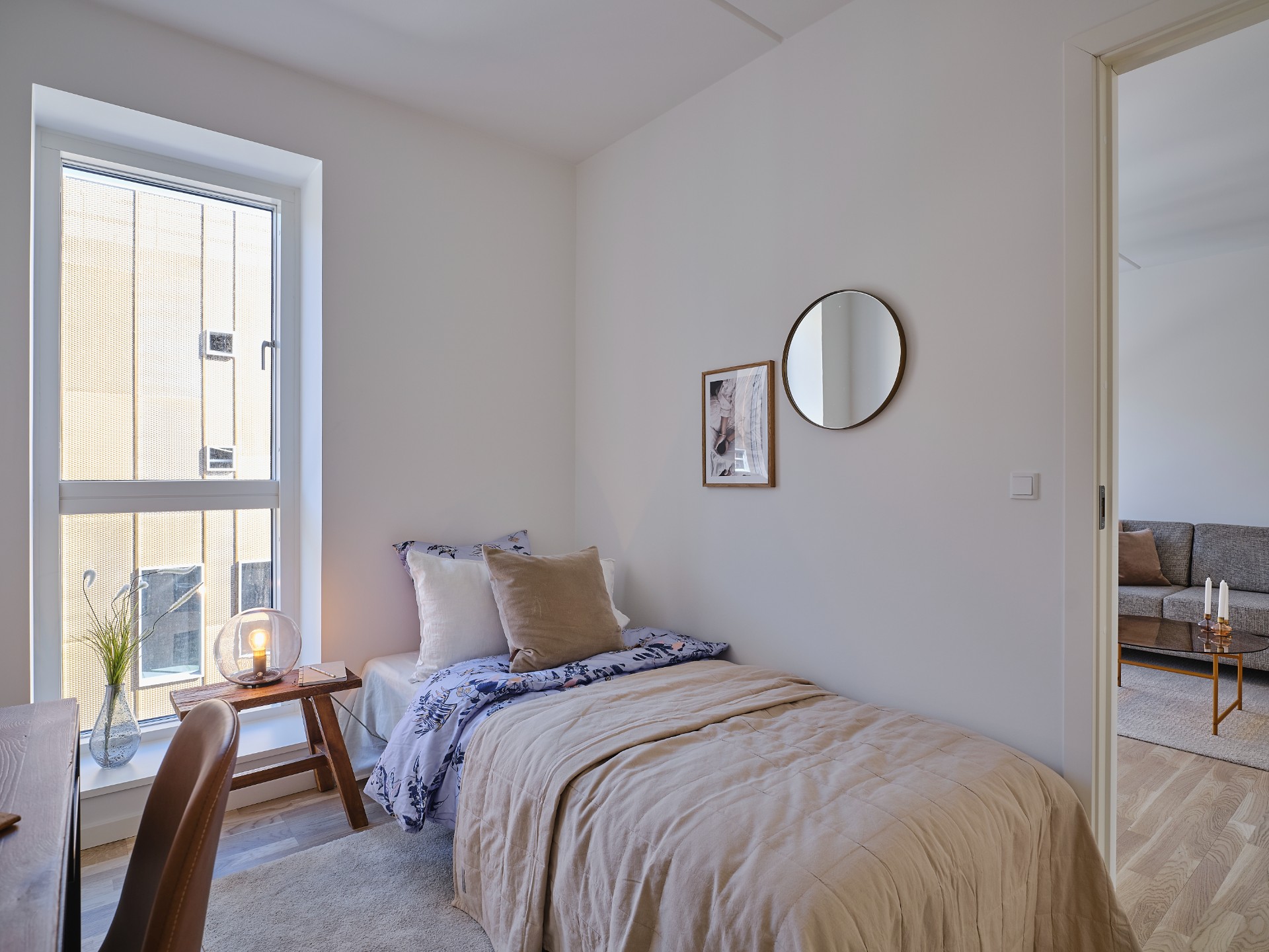 Frederiksbro er en helt ny bydel i Hillerød, hvor du kan være det bedste sted i livet. Her opføres ca. 1.300 lejeboliger i varierende typer og størrelser, så uanset hvor i livet, du befinder dig, kan du finde en bolig, der passer til dig. Midt i bydelen ligger Frederiksbro Parken og Svanesøen, hvor du kan lade batterierne op i grønne omgivelser samtidig med, at der er plads til leg og aktiviteter. Derudover får du som beboer glæde af legeområder, multibane, udendørs fitnessområde, privat badepavillon og bekvemme indkøbsmuligheder i områdets Coop 365. Fra Roskildevej og Trollesmindealle er der gode busforbindelser, herunder til Hillerød Station, som også kun er en 6 minutters cykeltur væk. Fra stationen kan du nemt komme til landsdelens øvrige store byer, og du er i København på kun 40 minutter. Hillerød Station er under udvidelse og bliver forbundet med den nye Favrholm Station nær det kommende Nyt Hospital Nordsjælland. Der er på området mulighed for op til to parkeringslicenser pr. bolig.