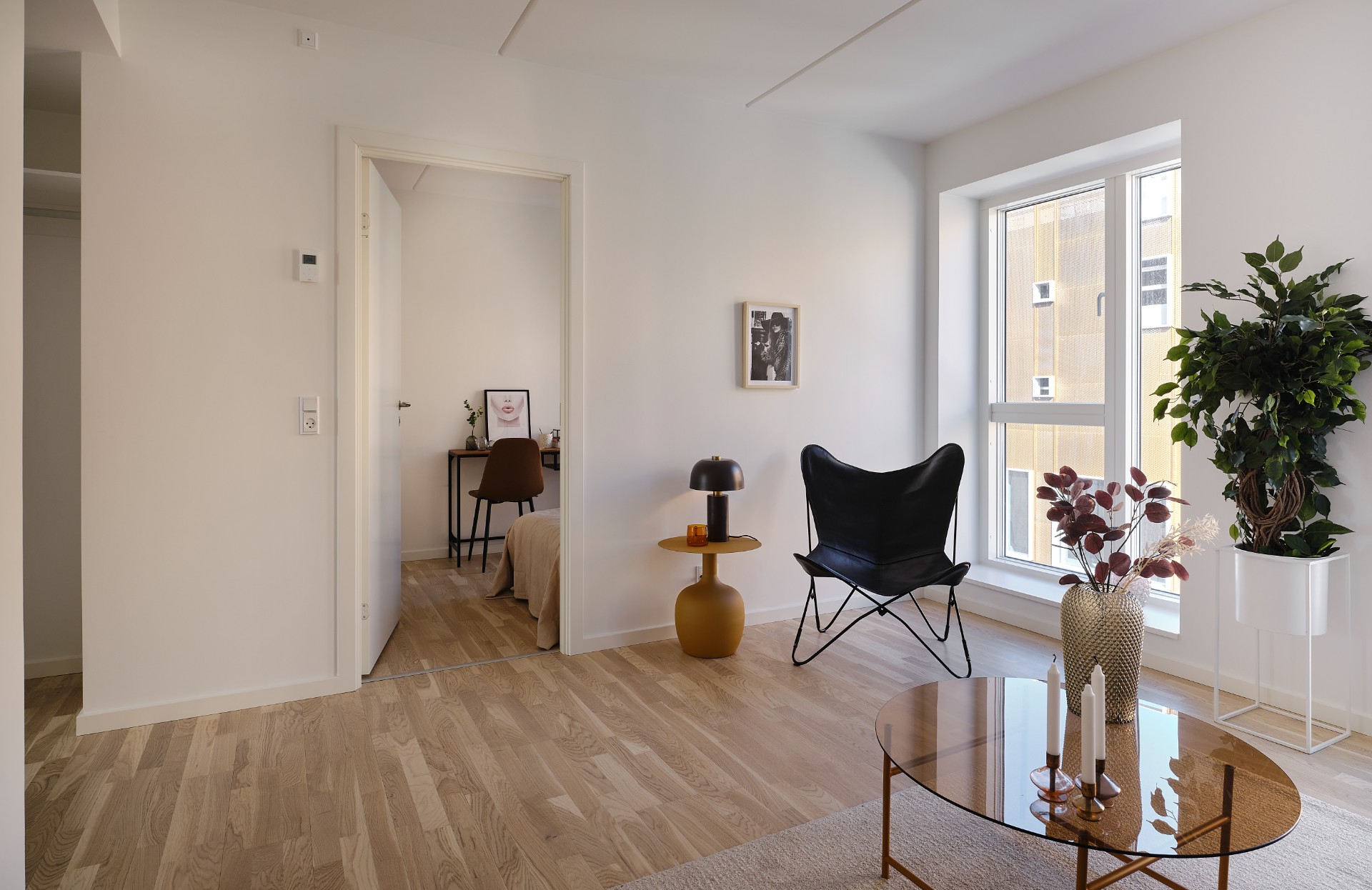 Blåbærhaven er en karrébygning på 6 etager med i alt 76 skønne lejligheder. Boligerne er mellem 46 og 119 m2 og har 2-5 værelser. Blåbærhavens 6 etager og placering på Frederiksbro giver mulighed for både at nyde den skønne udsigt over området og opleve den levende stemning fra Frederiksbro Torv helt tæt på. Derudover har bygningen en hyggelig fælles tagterrasse, som frit kan benyttes af Blåbærhavens beboere. Med en lejebolig i Blåbærhaven behøver du ikke vælge mellem fredfyldt natur og en levende bymidte, men kan få det bedste fra begge verdener.