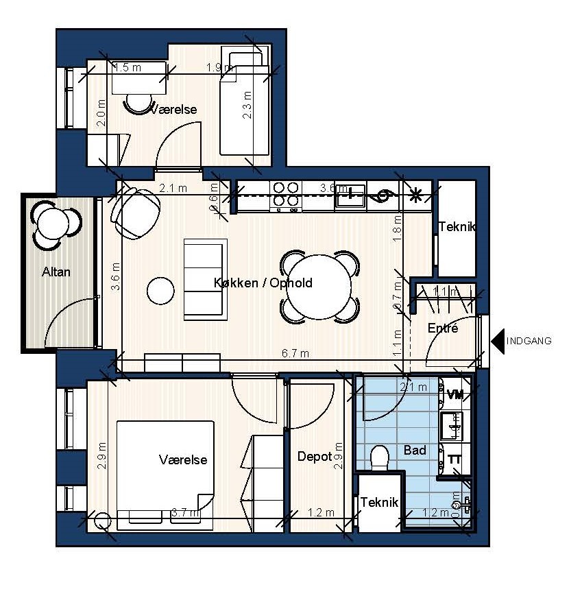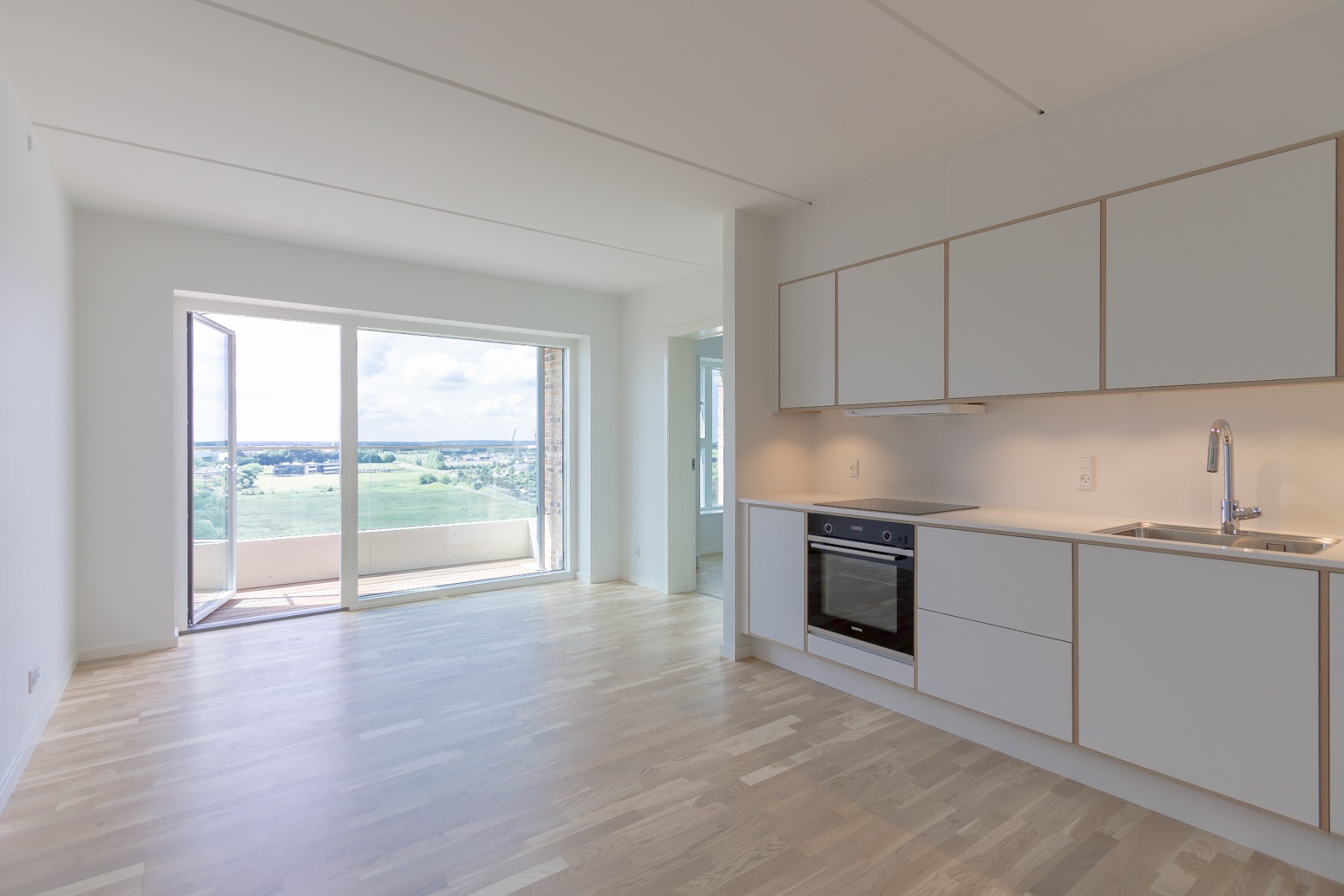 Lys 3-værelses lejlighed med rummelig altan. Lejligheden har et skønt køkken-alrum og to gode værelser med installerede skabe. Køkkenet fra Invita er stilrent og har hårde hvidevarer fra Siemens, som gør tiden i køkkenet både effektiv og bekvemmelig. Der er gulvvarme i alle rum og vaskemaskine og tørretumbler fra Siemens på badeværelset. Derudover har boligen et depotrum. *Vær opmærksom på, at billederne kan være fra en tilsvarende boligtype, og at udsigt m.m. derfor kan variere.