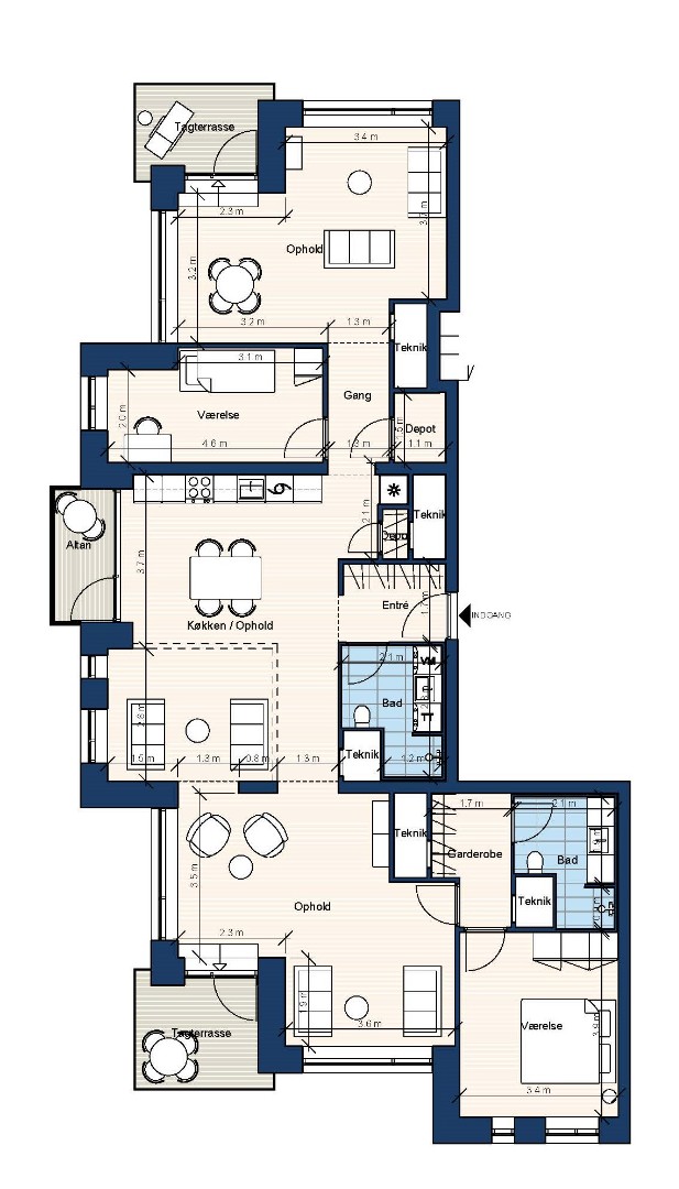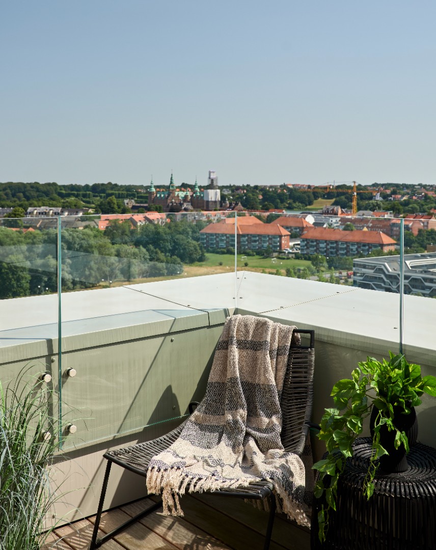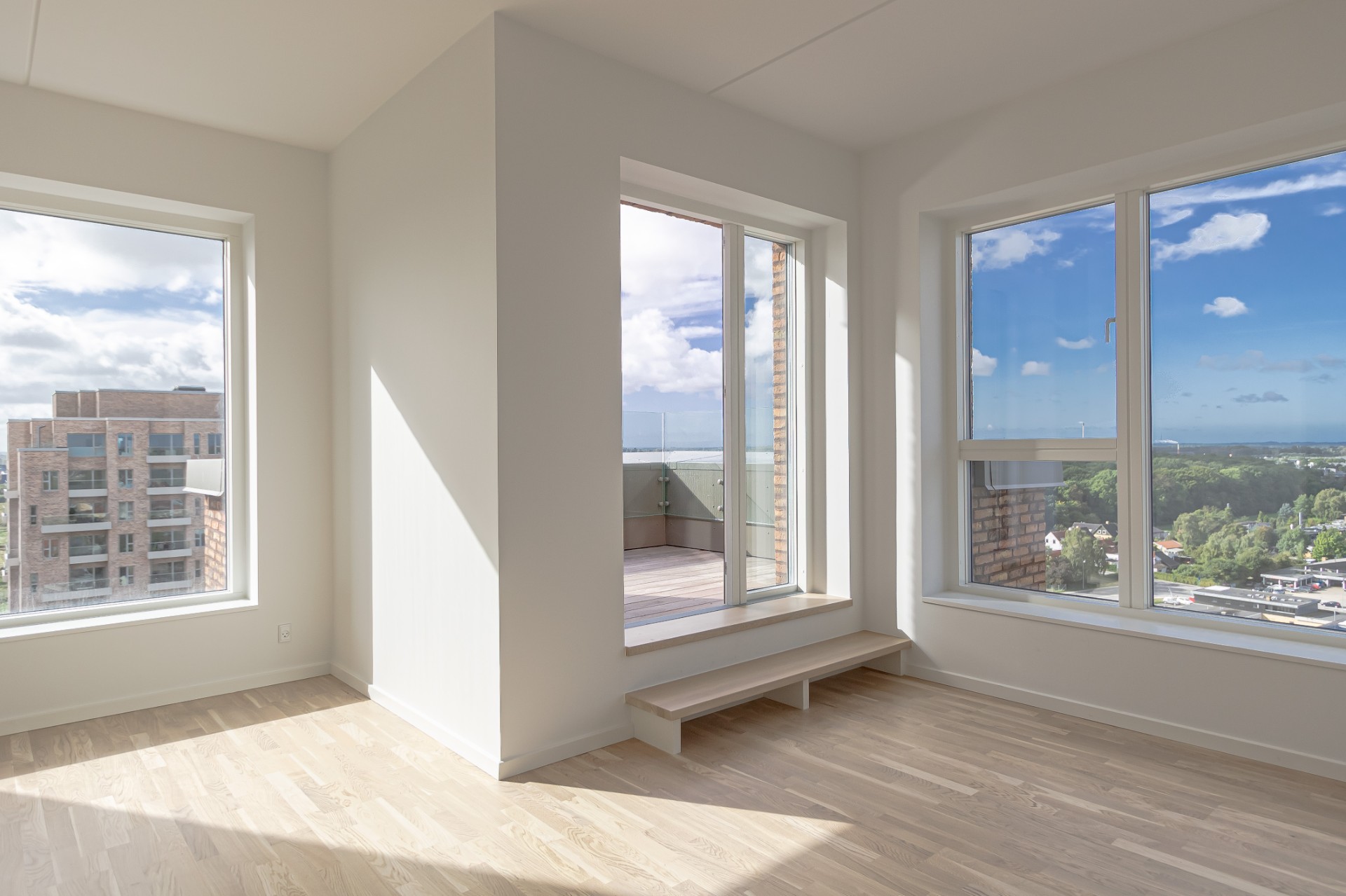 På 14. sal finder du denne indbydende og rummelige 4-værelses penthouselejlighed med god plads og lyse, tidløse materialer. Her bor du med lys og luft omkring dig og med en enestående udsigt over Hillerøds tage og smukke natur. Boligens naturlige samlingspunkt er det store køkken-alrum med et lyst og funktionelt køkken fra Invita. Herfra kan du åbne døren til en vestvendt altan med udsigt over tirsdagsskoven. I forlængelse af køkken-alrummet ligger stuen – et lyst og imødekommende rum med udgang til en skøn, sydvestvendt tagterrasse. I modsatte ende af boligen finder du endnu en stue med en nordvestvendt tagterrasse, hvorfra du kan nyde udsigten til Frederiksborg Slot, mens aftensolen farver himlen over Hillerød. Lejligheden byder derudover på et soveværelse med garderobe, et værelse, to badeværelser og et praktisk depotrum. Der er gulvvarme i alle rum, og boligen er udstyret med hårde hvidevarer fra Siemens, herunder vaskemaskine og tørretumbler.