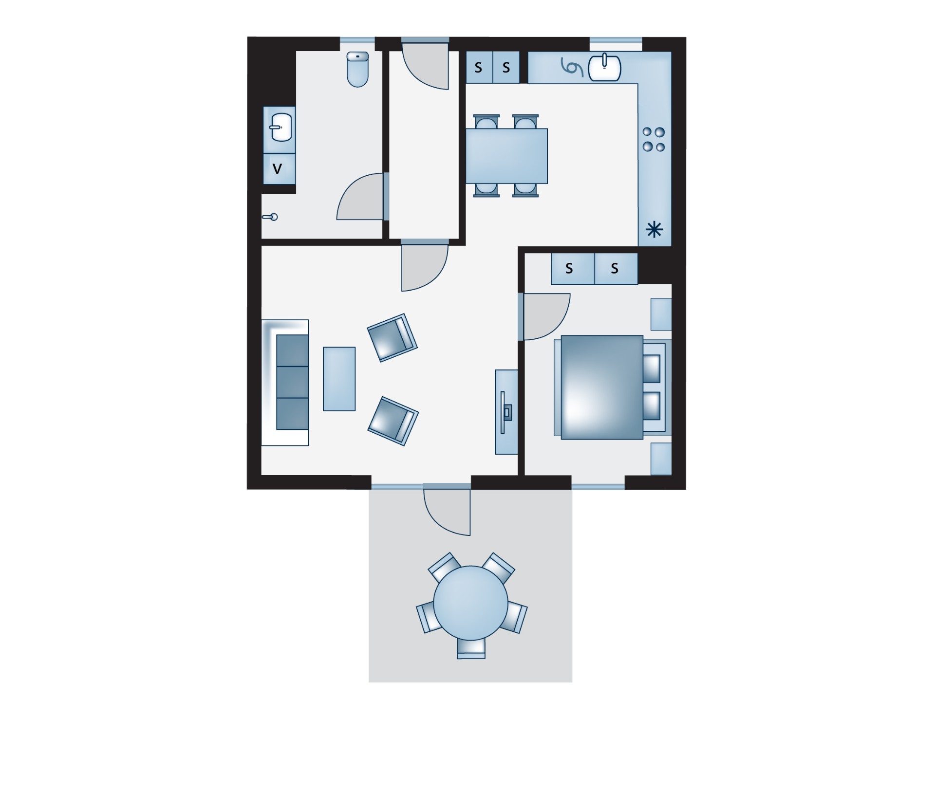 Lejligheden er beliggende i det hyggelige boligområde Klosterparken, som er kendt for sin familievenlige atmosfære, flotte grønne arealer og den brede vifte af udendørsfaciliteter, som gør det nemt at snige aktivitet ind i hverdagen. De mindste kan brænde krudt af på intet mindre end fire legepladser, herunder en kæmpe piratlegeplads, som er meget populær – også hos udefrakommende naboer som børnehaver. Derudover byder området på multibane, petanquebane og endda også en 25 meter lang swimmingpool, hvor der er tilknyttet livreddere. Med andre ord er der i Klosterparken skabt rum til, at du med venner, familie og naboer kan få en masse hyggelige stunder i den friske luft. Fællesarealerne i Klosterparken bliver vedligeholdt af et dygtigt serviceteam, som sørger for, at der altid er rent og pænt, så du blot kan nyde hverdagen i de skønne omgivelser. Ejendommen er anlagt som en hestesko med en yder-og inderkreds, og rundt om hesteskoen er parkeringsarealer, så du altid kan parkere tæt ved din bolig. Vores 312 lejligheder i Klosterparken er mellem 69 og 125 kvm, og fordeler sig på 2-4 værelser. Boligerne er i 1 eller 2 plan og har enten altan eller have med plads til rolige udestunder.