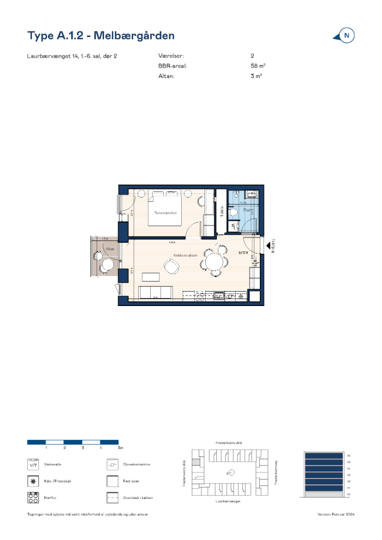 Lejligheden ligger i ejendommen Melbærgården, hvor du som beboer får glæde af et skønt fælles gårdmiljø med små grønne oaser med bænkesæt, cykelparkering og legefaciliteter. Der er elevator i alle opgange, og under bygningen er også en parkeringskælder med et begrænset antal parkeringspladser til leje – både med og uden tilknyttet el-ladestander. Melbærgården er en del af Hillerøds nye bydel Frederiksbro, som danner varme og trygge rammer om beboere i alle aldre. Her er kælet for detaljerne og etableret en masse skønne fællesfaciliteter, herunder parkområde, multibane, udendørs fitnessområde, legeplads og hyggelige terrassemiljøer. Som noget helt særligt har Frederiksbro også en privat badepavillon med svømmebassin, omklædningsfaciliteter og sauna, hvor du som beboer kan tegne medlemskab.