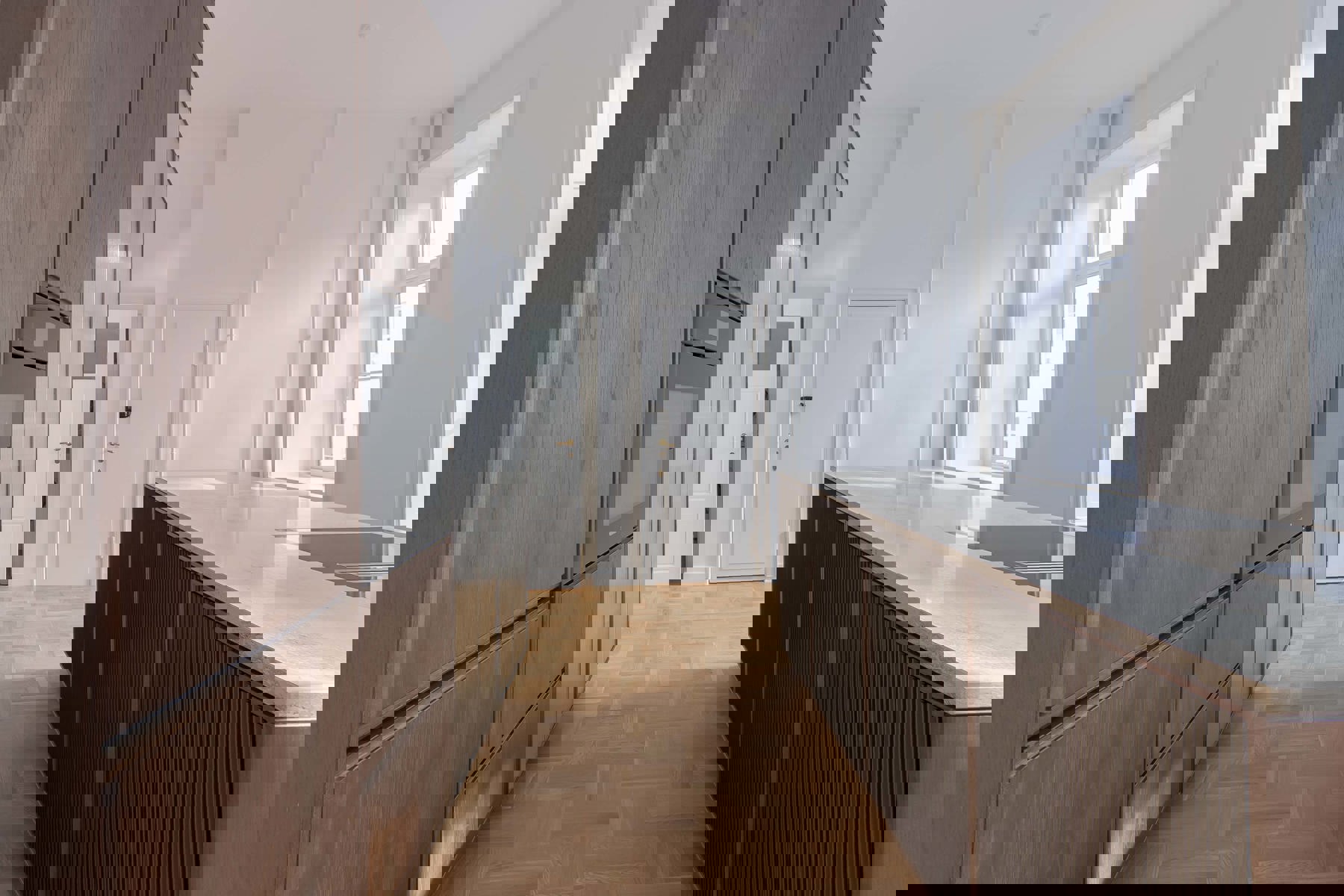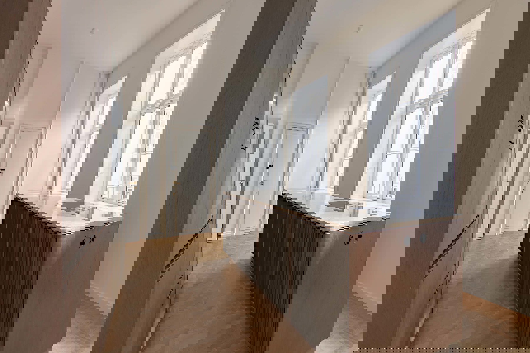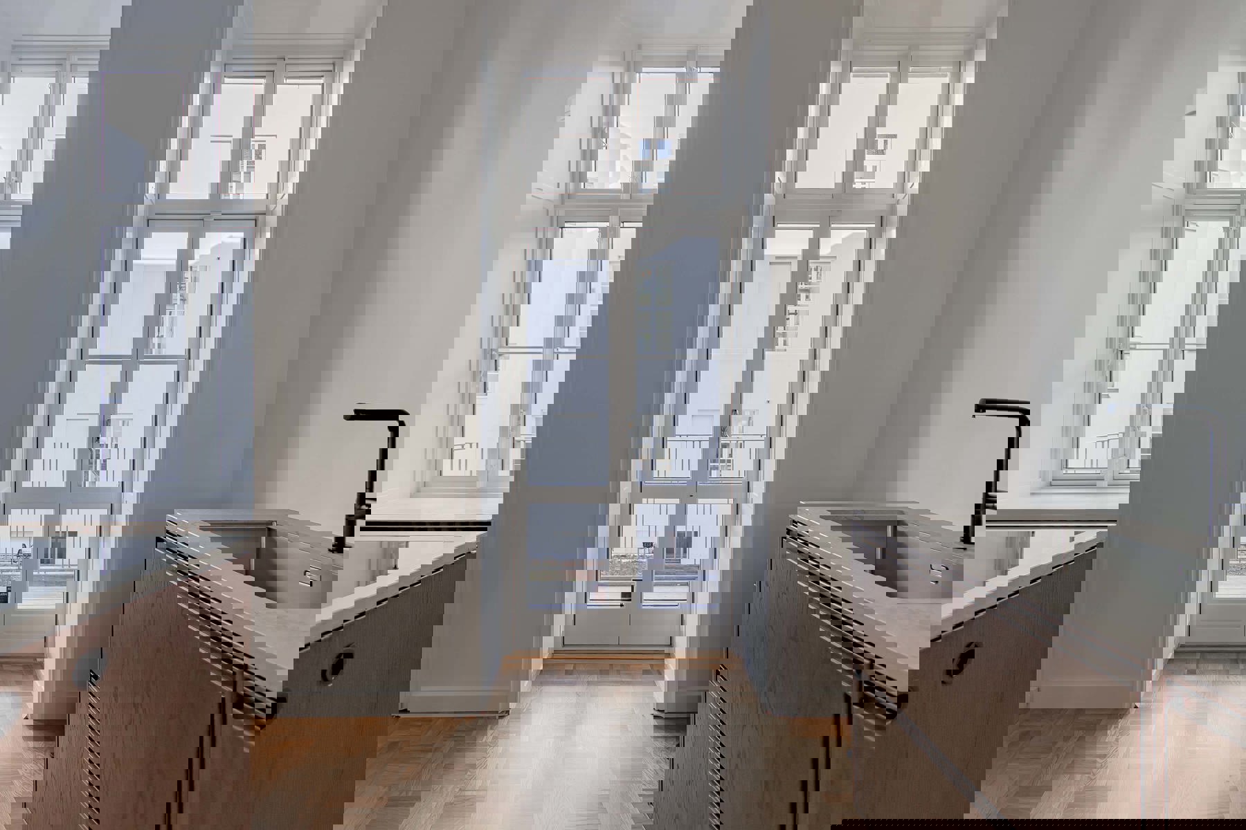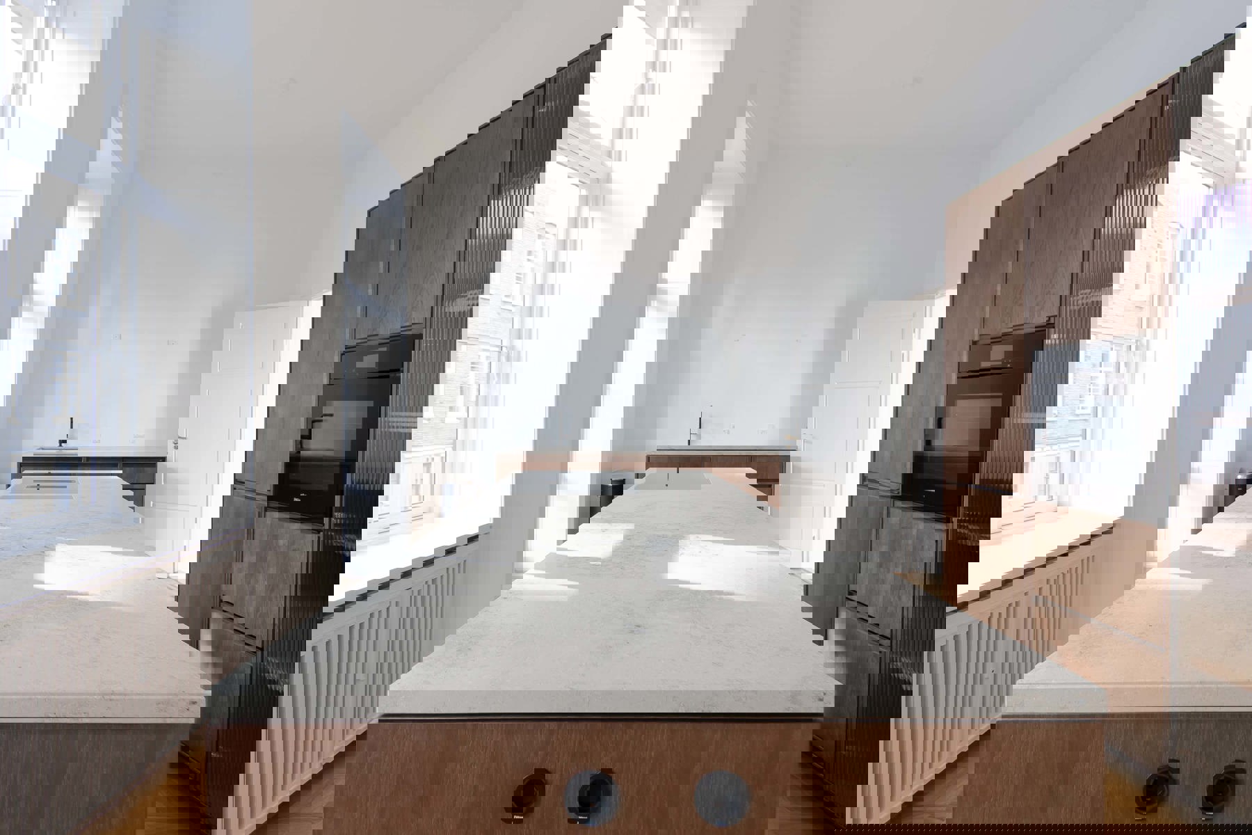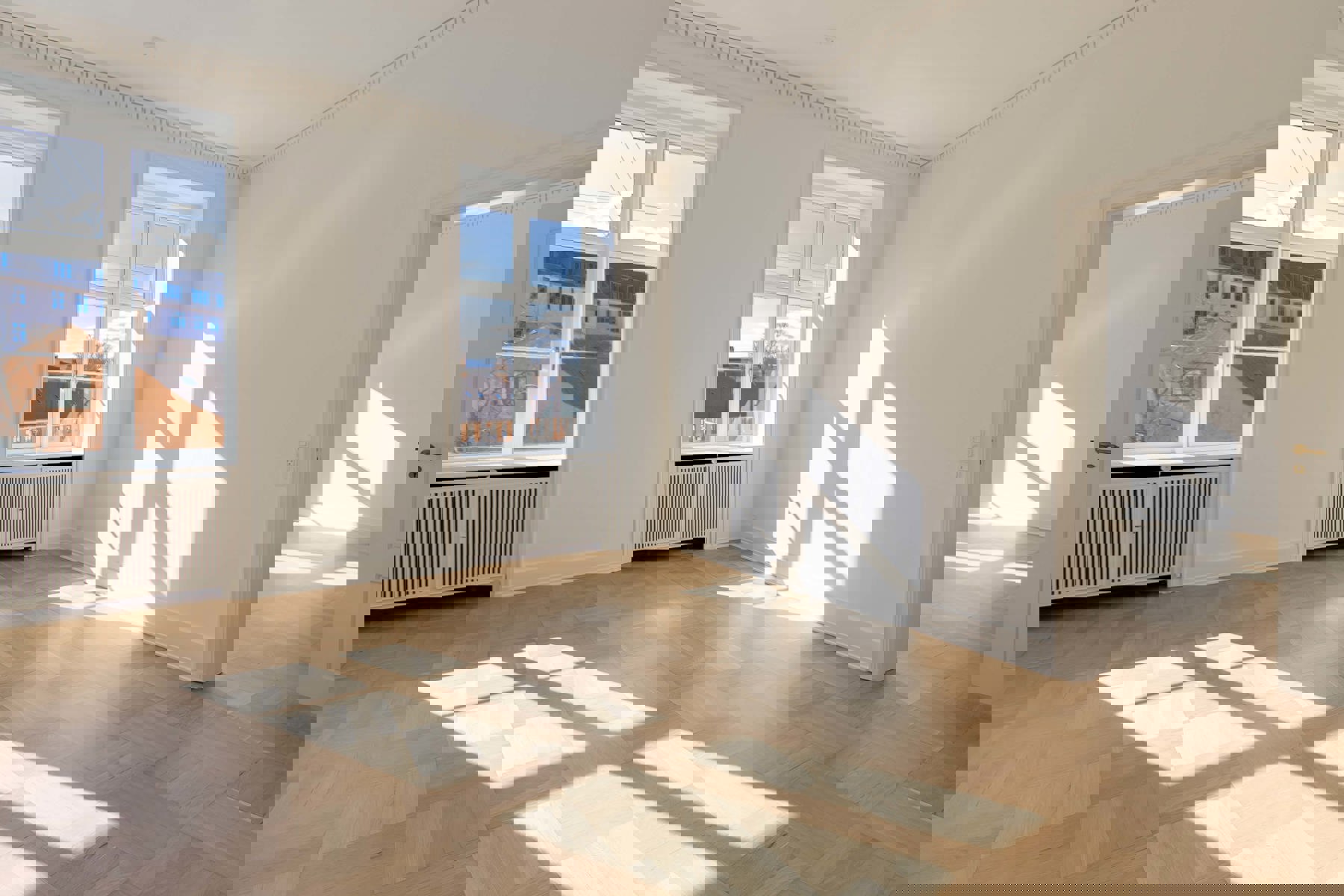 Denne rummelige og stilfulde herskabslejlighed på Store Kongensgade, er noget helt særligt. Med sine 286 m² fordelt på seks værelser, herunder flere smukke stuer, er boligen et perfekt valg for dem, der ønsker plads, elegance og en unik beliggenhed midt i København. Lejlighedens master bedroom er indrettet med et luksuriøst walk-in-closet, der gør det nemt at organisere garderoben. Badefaciliteterne er også i top med et stort, moderne badeværelse, der rummer både badekar og en stor bruseniche. Derudover er der et flot gæstebadeværelse, som tilsammen sikrer både funktionalitet og komfort i hverdagen. Køkkenet er en drøm og fremstår utrolig elegant. Det blev totalmoderniseret i 2022 med eksklusive løsninger fra Vipp og er i en klasse for sig selv. Fra lejlighedens altan, som vender mod gården, kan man nyde en rolig stund væk fra byens puls. Udsigten fra boligen er en historie i sig selv. Med direkte kig til de ikoniske gule bygninger i Nyboder kan man opleve et af Københavns mest historiske kvarterer hver eneste dag. Denne herskabslejlighed forener klassisk charme og moderne luksus i hjertet af byen.